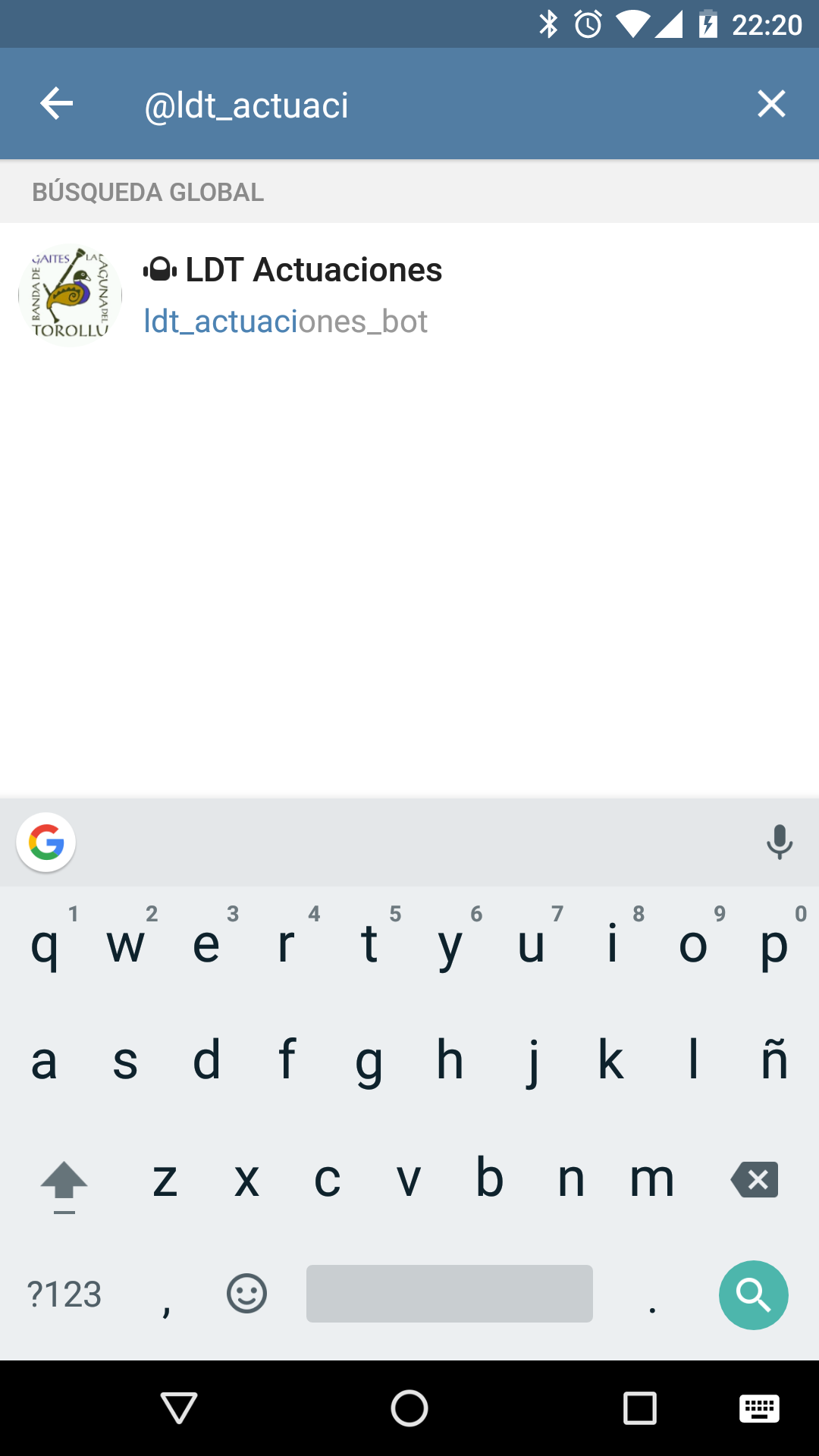 Paso 3. En la caja de búsqueda escribimos @ldt_notificaciones_bot. Nos aparecerá el bot en la parte de abajo.