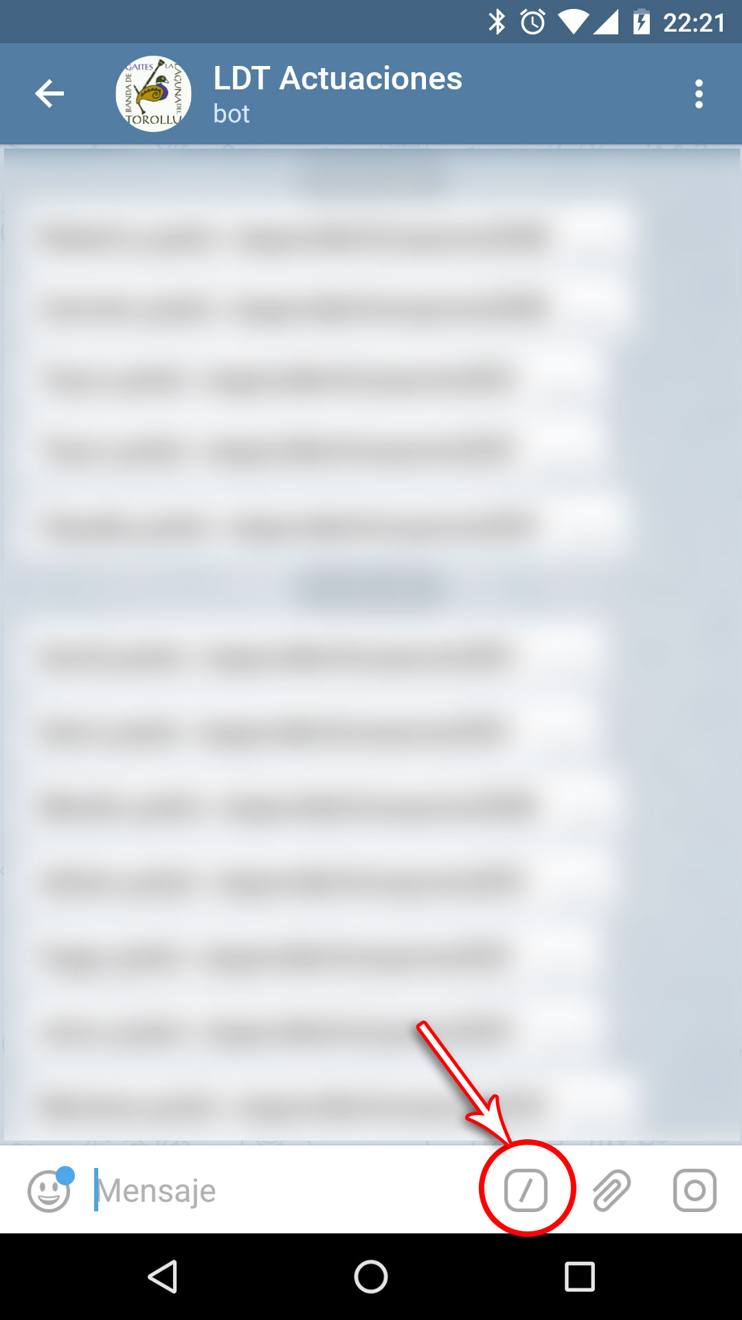 Paso 4. En la caja de texto escribimos una "/" o pulsamos sobre el icono con ese símbolo para que nos aparezcan