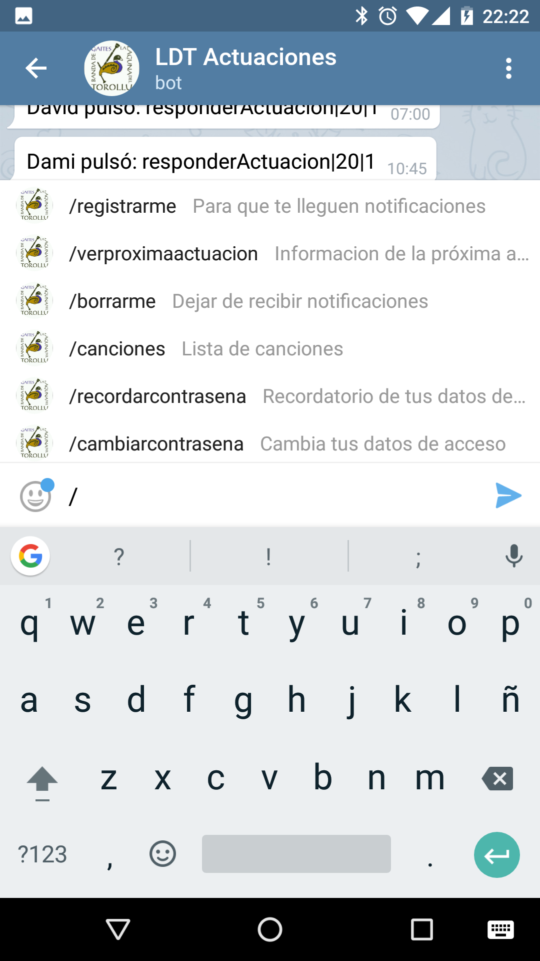 Pulsamos sobre él y nos abrirá la pantalla de chat con el bot.